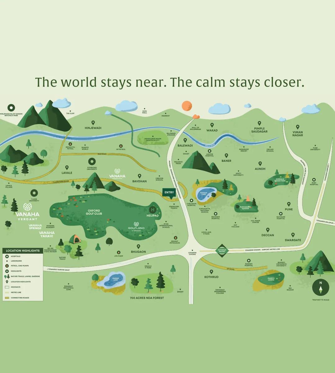 Life at Vanaha Verdant is unlike anything you know. Its unique location gives it a climate and temperament that is unmatched by city life. Surrounded by hills and lush greenery. A place where you can hear the chirping of the birds and ripples of the water. It is a sanctuary for your mind, right here in Pune. An endless expanse of earth stretching as far as the eye can see, Vanaha Verdant is a place that lets you open up your senses to absorb everything that is there to feel.